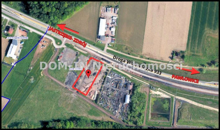 • działka przy głównej drodze wojewódzkiej(DW933) łączącej Jastrzębie-Pawłowice
