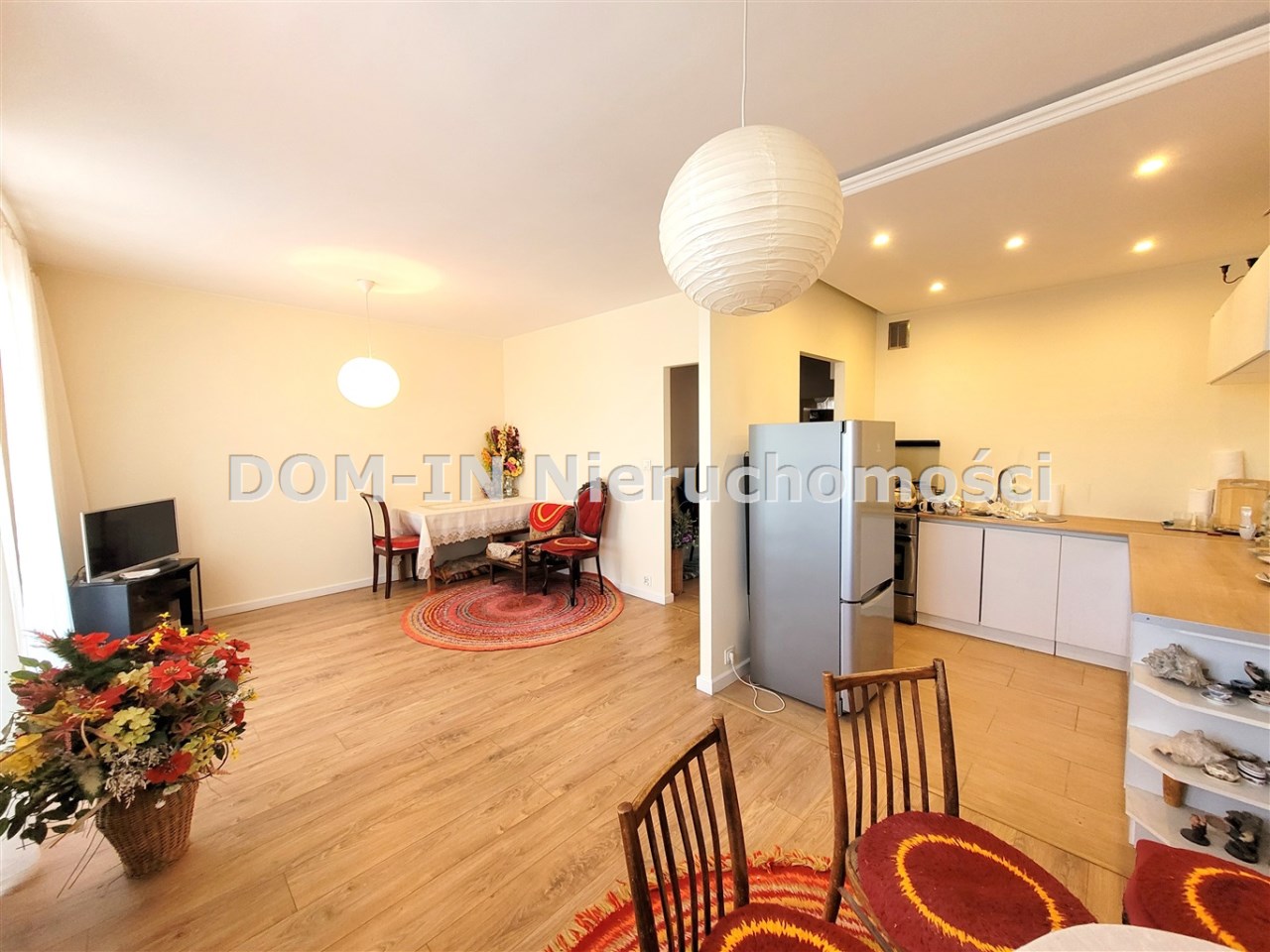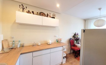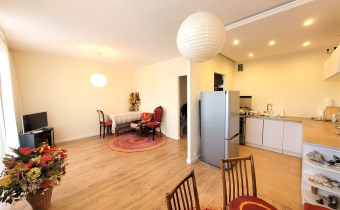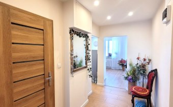 - część mieszkania po remoncie (salon, przedpokój, kuchnia) : w tej części nowe wylewki, instalacje, podłogi w panelach, ściany i sufity w gładziach), mogą pozostać meble w zabudowie.
