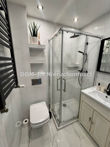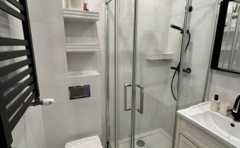 - łazienka z kabiną prysznicową w glazurze.